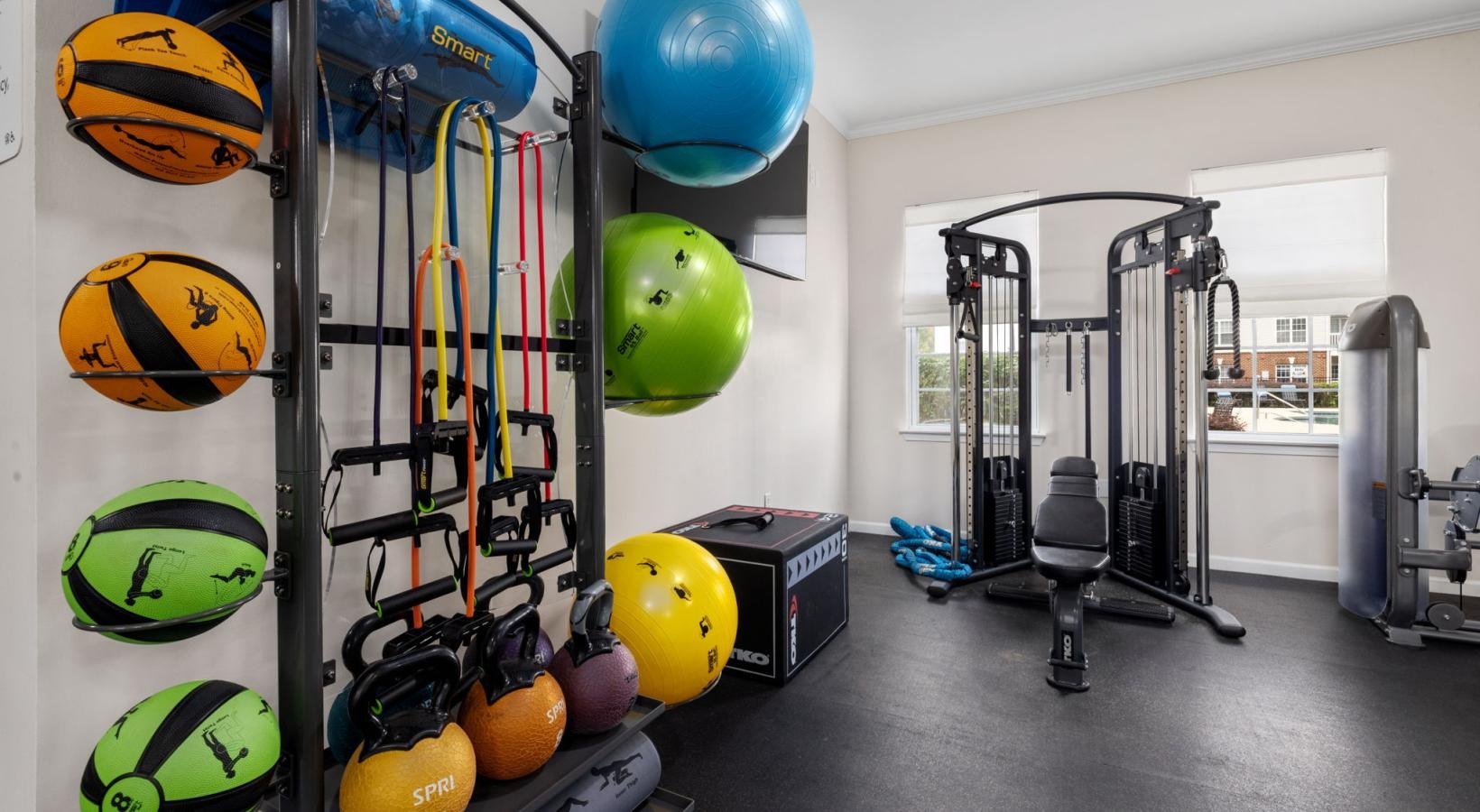 • a gym with exercise equipment