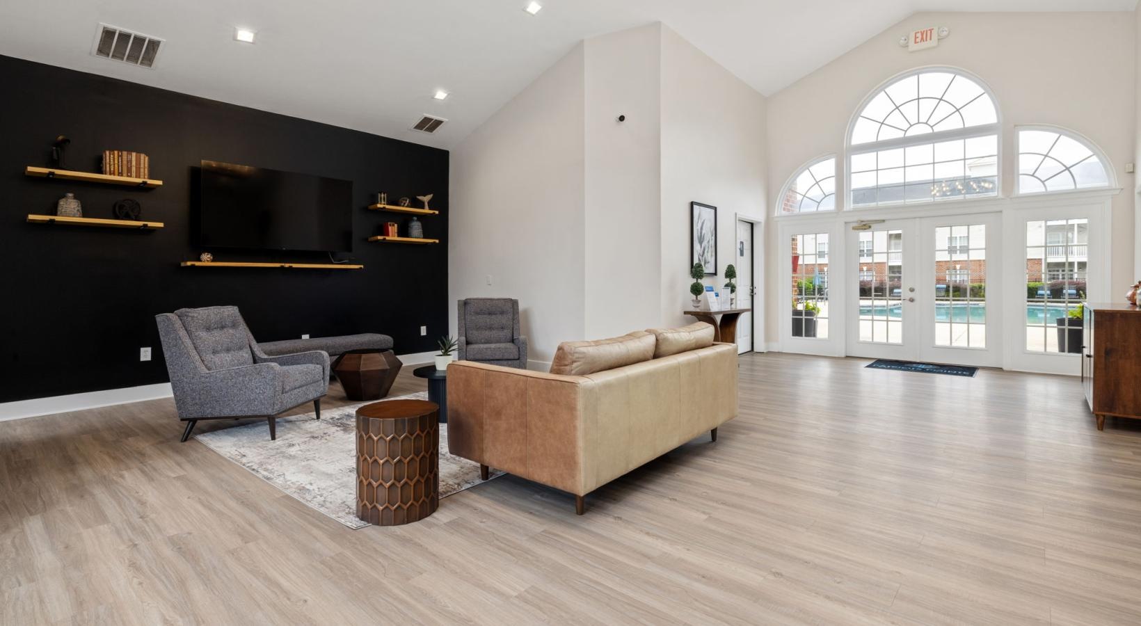 • a lounge with a tv and couches