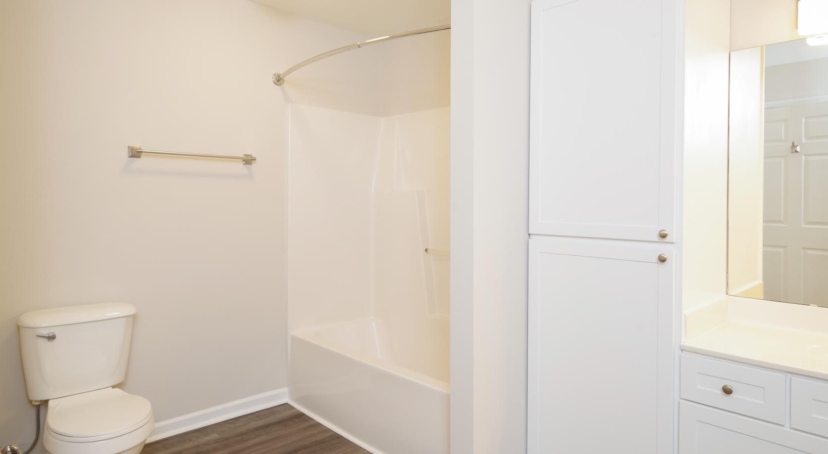 • a bathroom with a mirror sink toilet and a bathtub