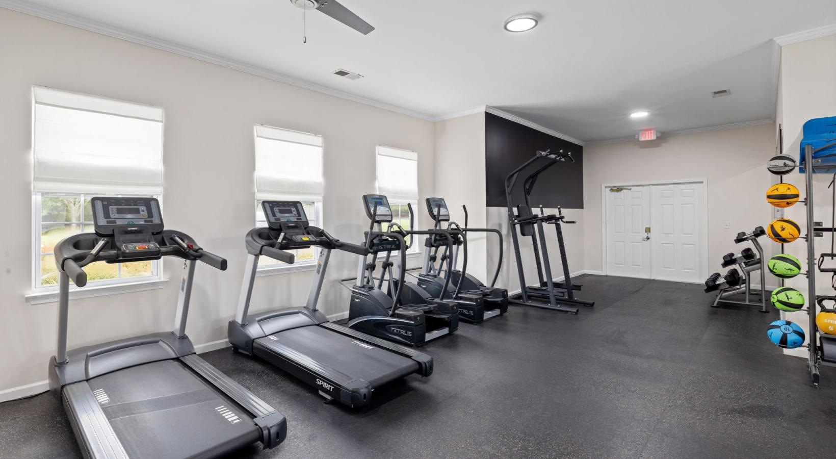 • a gym with treadmills